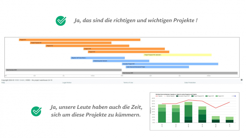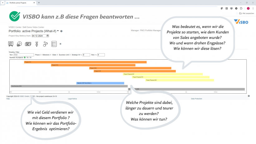 - wann neue Projekte gestartet werden können, ohne Prozess- und Ressourcen-Konflikte zu verursachen
