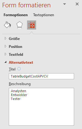 "TableBudgetCostAPVCV" im AlternativText.Titel des Powerpoint Shapes.