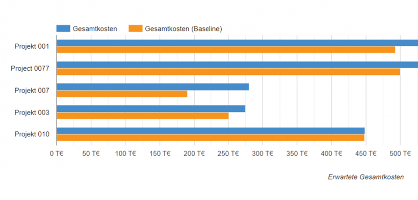Zeigt die Kosten für alle Projekte im Portfolio mit den gleichen Farben wie in der Projektübersicht der einzelnen Projekte.