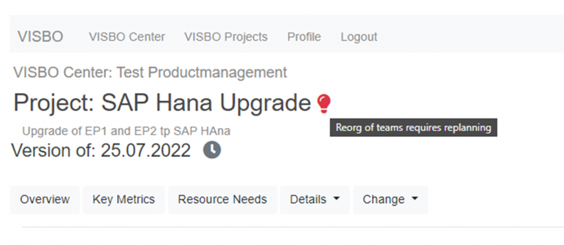 Eine Erläuterung für den Projekt-Status wird bei der Ampel auf der Projekt-Kennzahlen Seite angezeigt